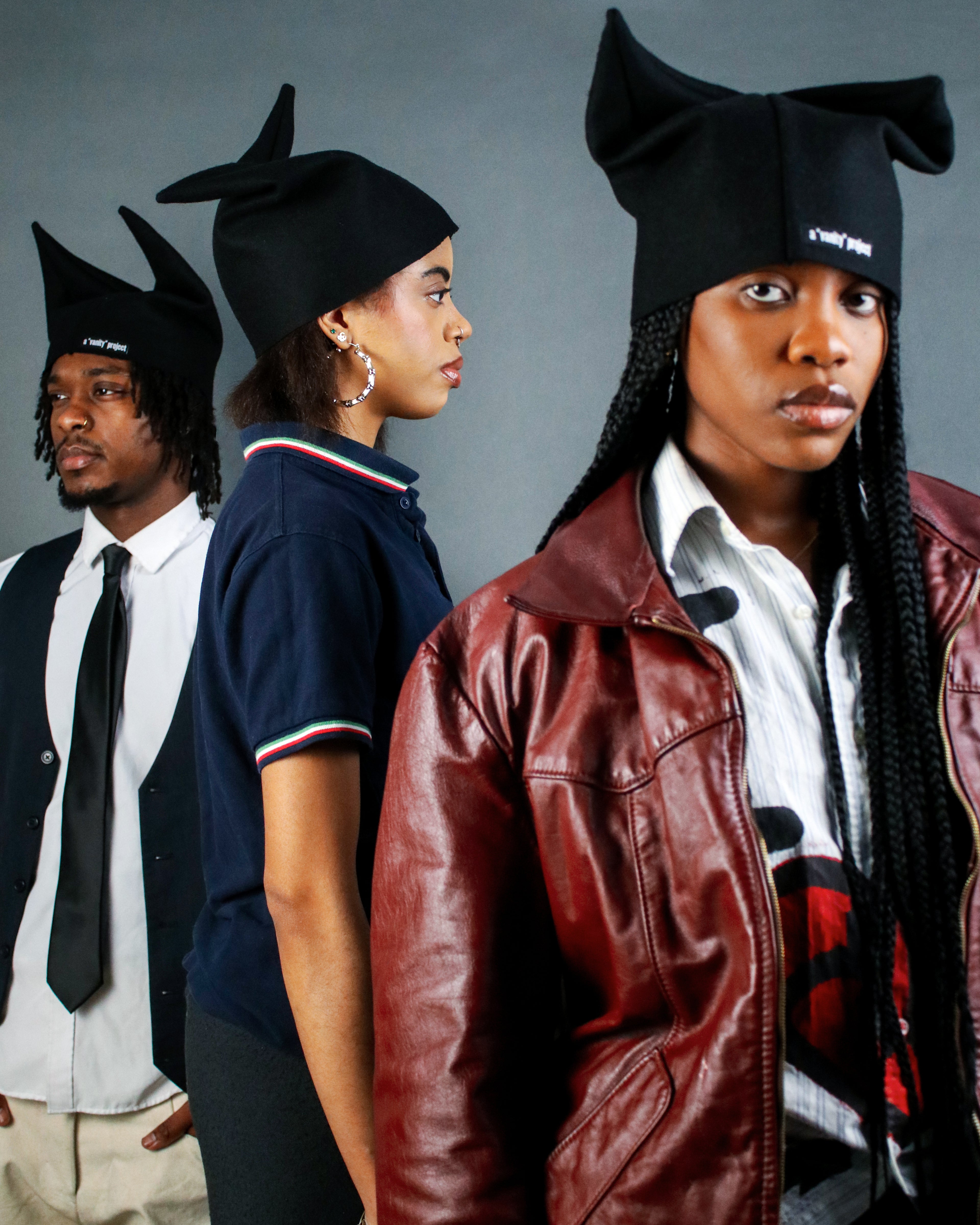This collection introduces the Buni Hat as the first release from Vanity Project. Styled with select Vanity Project pieces. Some items shown are archival or studio pieces.